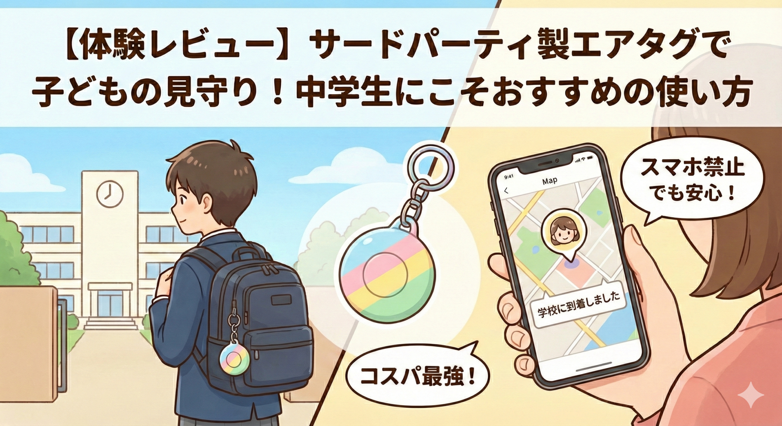 「子供の見守り」と「鍵の紛失防止」。この一石二鳥の運用こそが、AirTagのコスパを最大化する使い方です。100均やAmazonで売っている安いキーリング付きケースで十分ですので、ぜひ鍵とセットにして持たせてあげてください。
