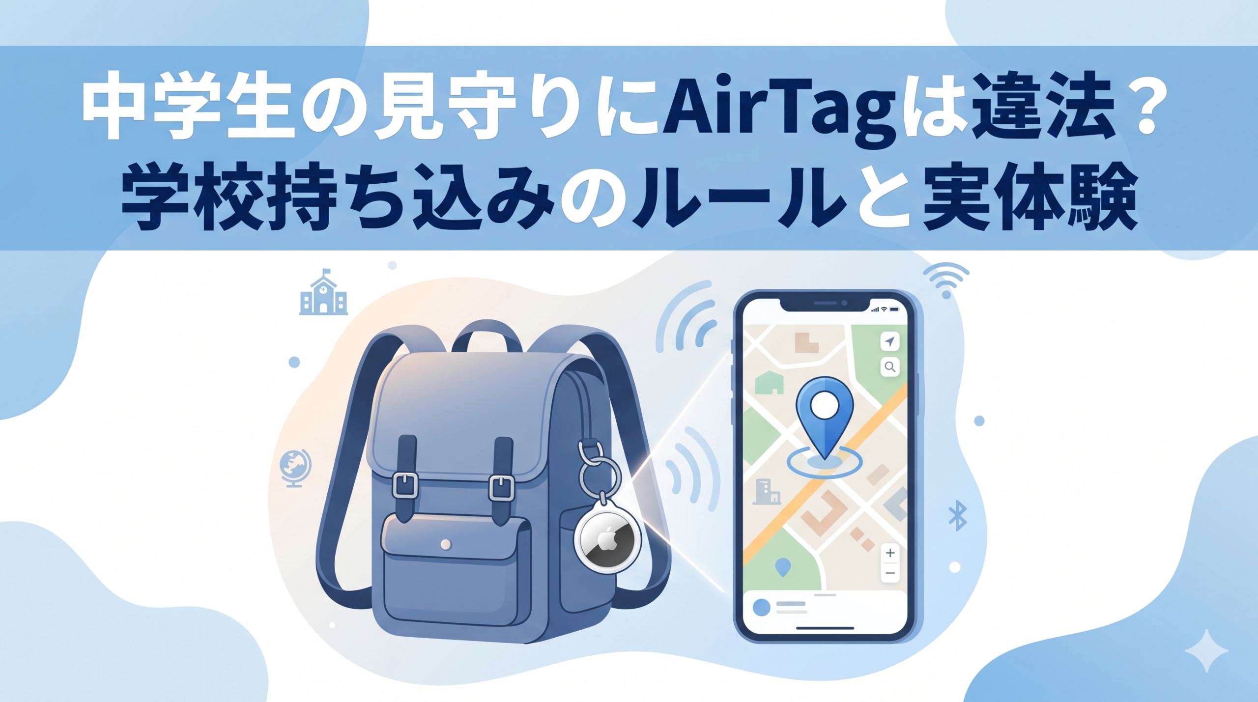 そこで注目されるのがAirTag(エアタグ)などの位置情報タグです。でも、いざ使おうとすると気になるのが「これって違法じゃないの?」「学校に持ち込んでいいの?」という疑問。