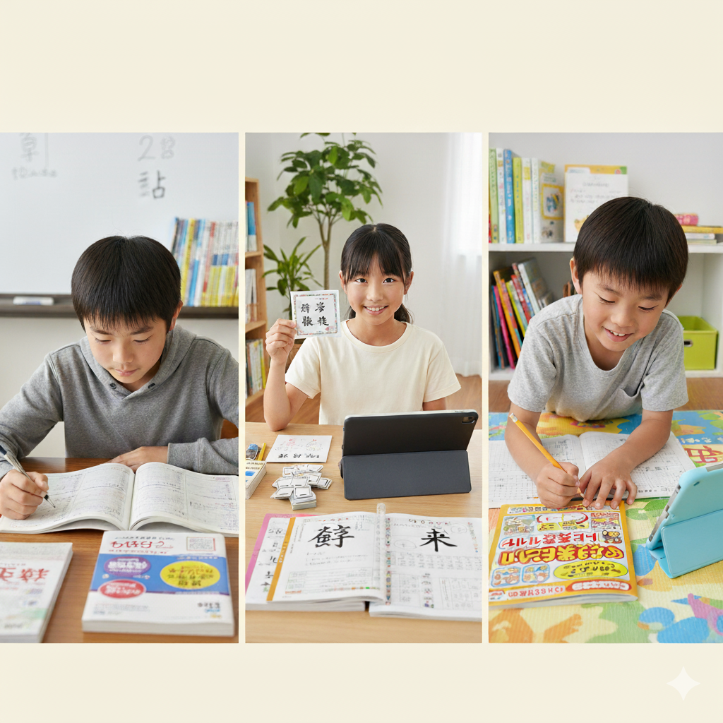 - 第三子:市販ドリルで基礎固め、今後漢検予定