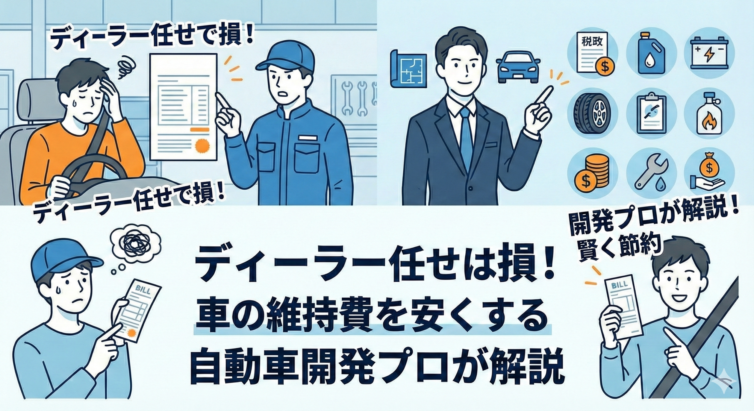 私は自動車開発会社で働いているのですが、車の維持費を安くする方法として以下のようなものがあります。もしかするとあまり一般的ではないものもあると思いますが、業界関係者だからわかるところもあると思うので、説明したいと思います。またお金だけでなく、なるべく手間をかけずにというところもポイントにしています。